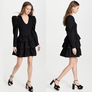 Ulla Johnson Black Tiered Cotton Mini Dress S | Puff Sleeve, Boho Gothic $690