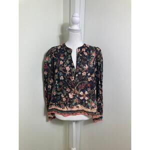Ulla Johnson Black With Teal/Orange Florals Shirt Sz 4