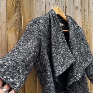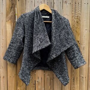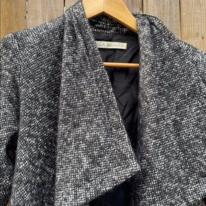 Elegant tweed jacket with a classic open front. Ideal for chic layering.