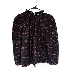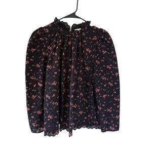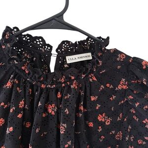 Ulla Johnson Black with Red Floral Eyelet Blouse