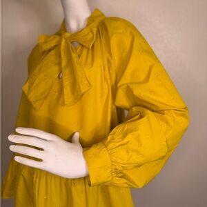 Ulla Johnson Bow Yellow 100% Cotton Ruffle by the | waist Sz 8 in good condition a light stain near the bow collar picture is posted other than that gorgeous yellow blouse.