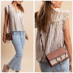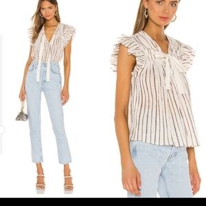 Ulla Johnson Bria Blouse Top Metallic Striped Flutter Sleeve