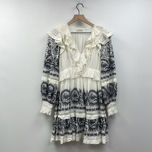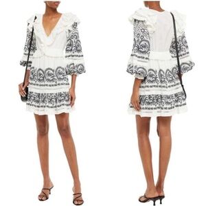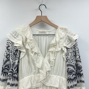 Ulla Johnson Bridget Embroidered Ruffle Tiered Mini Dress Boho Navy 2