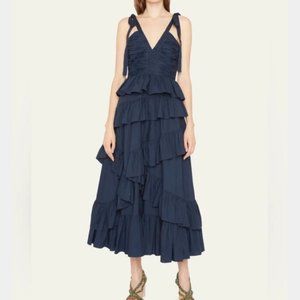 Ulla Johnson "Candace" poplin dress bedecked with ruffles, and...