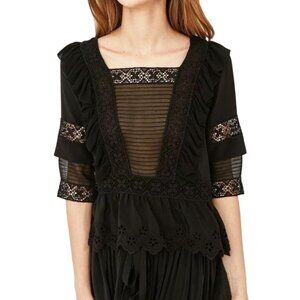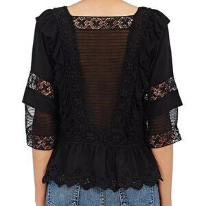 Ulla Johnson Charlotte Lace Sheer Mesh Black Silk Ruffle Eyelet Blouse 6