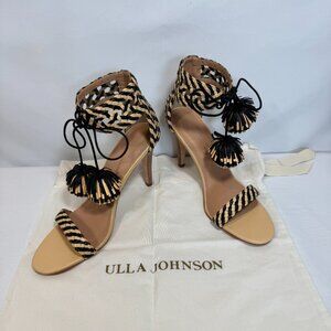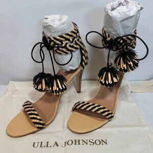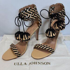 Ulla Johnson Clara Melange Sandal Pom Pom Tassel Wrap Heels - Look Brand New