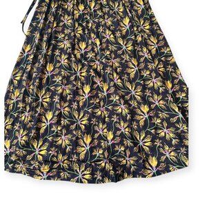 Ulla Johnson’s Clea dress is cut from the brand’s silky tricot jersey that drapes fluidly and moves with the body. The sleeveless, crew-neck bodice descends to an elegant midi skirt, cinched by an adjustable drawstring waist for custom shape. The “Maple” print—golden yellow and pink blossoms on a black ground—delivers signature Ulla romance with easy, day-to-evening versatility. Effortless to slip on, it layers beautifully with sandals or boots year-round.