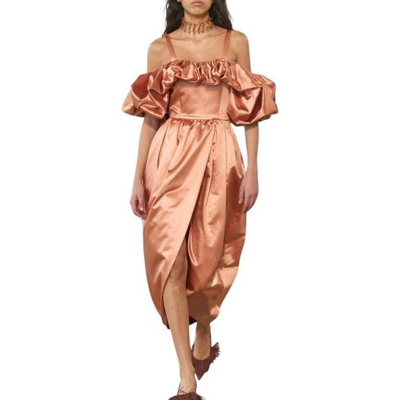 Ulla Johnson Copper Orange Off Shoulder Satin Tulip Lelita Midi Dress 10