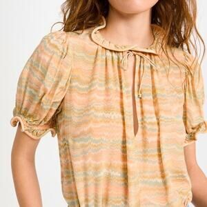 Ulla Johnson Corine Opal 100% Silk Short Sleeve Blouse