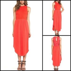 Ulla Johnson Cowrie Sleeveless Smocked Coral Raw Asymmetrical Hem Midi Dress 6