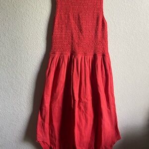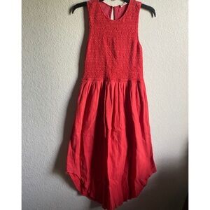 Ulla Johnson Cowrie Sleeveless Smocked Coral Raw Asymmetrical Hem Midi Boho Cottagecore Resortwear Vacation Brunch Dress 6