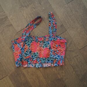 Ulla Johnson Crop Top Womens 12 Multi Alexandra Flamingo Printed Button Detail.