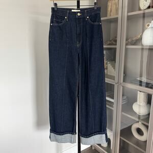 Ulla Johnson Cuffed Wide Leg The Genevieve Jeans 27 Dark Wash Tigris Blue Denim
