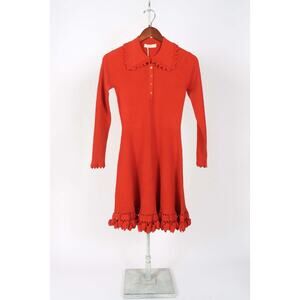 Keyword tags: Ulla Johnson dress, Cybil dress, rib knit mini, tulip hem, long sleeve dress, sweater dress, designer dress, red dress, statement dress, size M