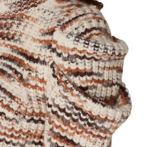 Ulla Johnson's 'Daphne' sweater is defined by its voluminous puffed sleeves that are gently gathered at the shoulders. it's knitted from a cozy alpaca-blend and decorated with stripes in an earthy color-way.