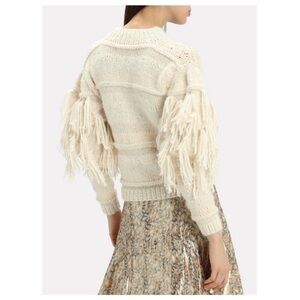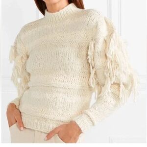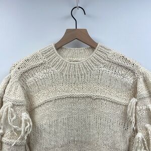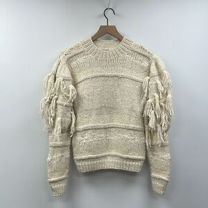 Ulla Johnson Delma Ecru Alpaca Fringe Chunky Knit Pullover Sweater Cream Small
