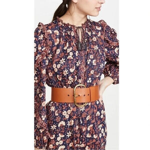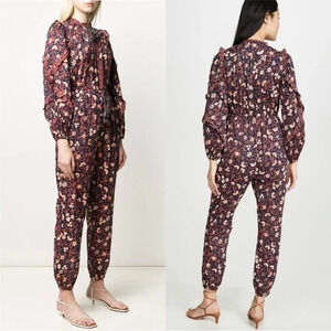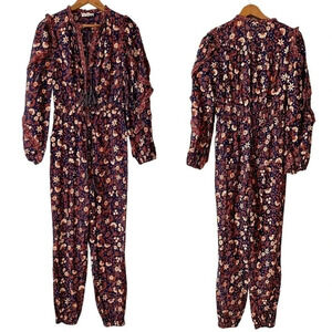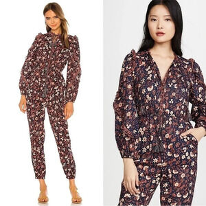 Ulla Johnson Delphine Jumpsuit Navy Floral Ruffle Tassel Tie Boho Chic Size 2