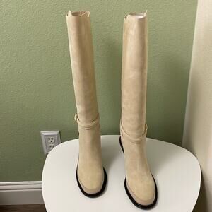 NWT Ulla Johnson Devon Knee High Boot Color Powder US 10 EU 40 Gold Buckle. 21” tall