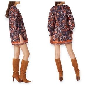 Ulla Johnson Devya Floral Long Balloon Sleeve Shift Dress, Size 2, New with Tag