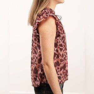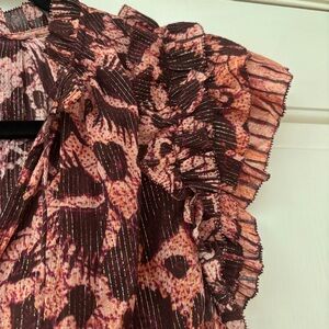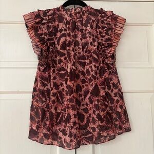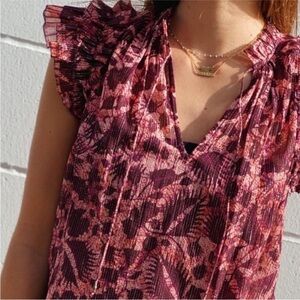 Ulla Johnson Dira Top Bordeaux Metallic Ruffle Size 6 Flutter Sleeve Tassel Tie