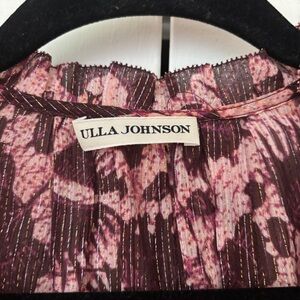 ULLA JOHNSON Dira Top Bordeaux Metallic Ruffle Size 6 Flutter Sleeve Tassel Tie