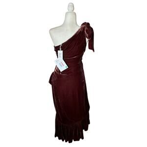 Ulla Johnson Elise One Shoulder Silk Velvet Midi Dress 2 Purple Brown