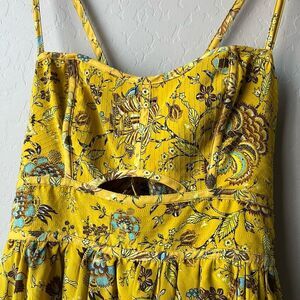 Ulla Johnson Dress Silk Floral Josanna Yellow Cut Out Midi Gown Size 6