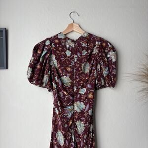 Ulla Johnson Dress Silk Floral Puff Sleeve Red Ruched Heleen Midi Dress Size 0