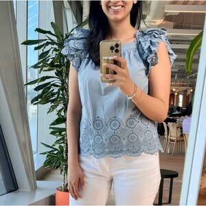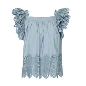 Ulla Johnson Dusty Blue Babydoll Top SIZE 4 Cottage Cotton Ruffle Eyelet $370