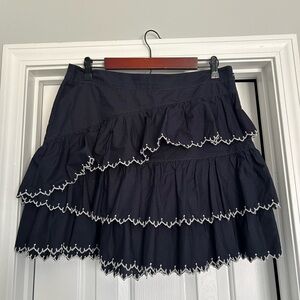 Ulla Johnson Ella Skirt Navy Embroidered Layered Tiered Scalloped Edge