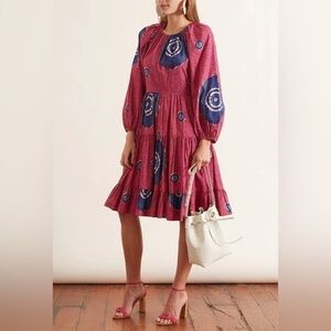 Multicolour cotton Emelyn abstract-print dress from Ulla Johnson featuring an abstract print, a round toe, a fitted waist, a flared skirt and a knee length.