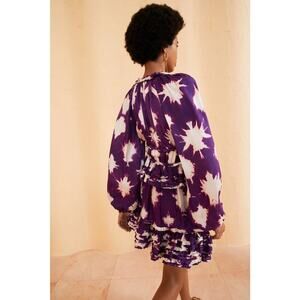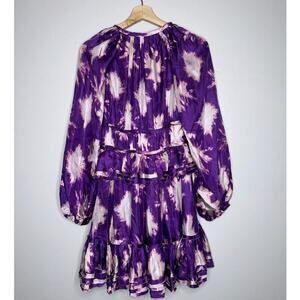Ulla Johnson Emery Tie-Dyed Ruffle Trim Silk Mini Dress Purple/White Size 0
