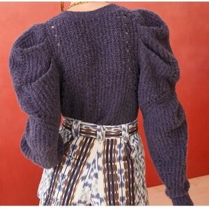 Leg-of-mutton sleeves, Low-cut, Openwork knit, Comfortable