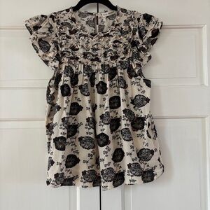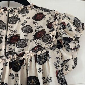 Ulla Johnson Erin Top Gardenia Floral Flutter Sleeve Size 4 Viscose Cotton Blend