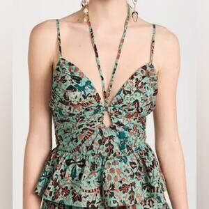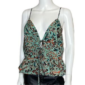 Ulla Johnson Essie Cutout Pintucked Floral Poplin Camisole Green Women’s Sz 14