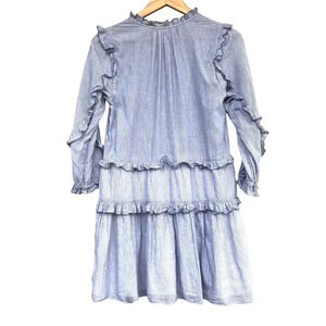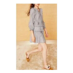 Ulla Johnson Essie Dress Gris/Grey Ruffled Lace-Up Tassels Hand-Stitching. Size 2