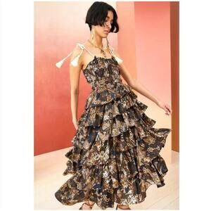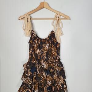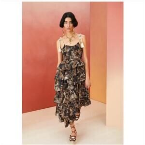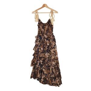 Ulla Johnson Estela Asymmetric Tiered Floral-Print Dress Bronze Brown Size 2