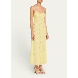 Ulla Johnson Eve Embellished Silk Dress in Citron 0