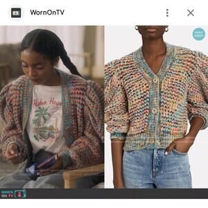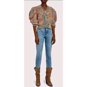 Ulla Johnson Fiora Wool Puff Sleeve Rainbow Cardigan Sweater Sz M / L medium large