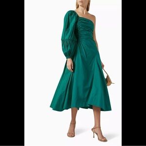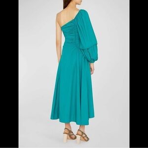 Ulla Johnson Fiorella Teal One Shoulder Puff Sleeve Midi Dress Size 4 Event