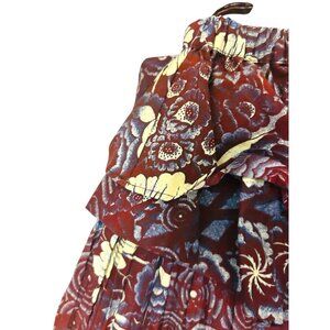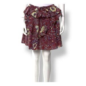 Ulla Johnson Floral Pleated Mini Skirt Red Cotton Size 10 Large Fall Staple