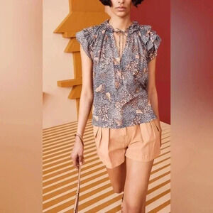 Ulla Johnson Floral Print Top - Black, Cream, Pink