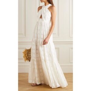 Ulla Johnson Fontaine Polka Dot Cotton Silk Jacquard Maxi Dress Gown Size 2