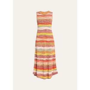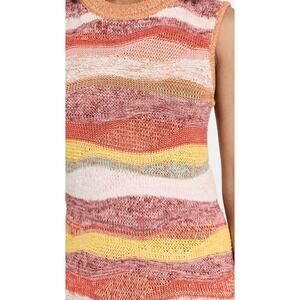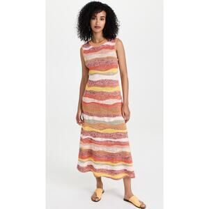 Ulla Johnson Gaia Dress in size S in very good condition. Ulla Johnson launched her line in 1998 in New York City. Known for its custom prints, intricate embroideries, and fine tailoring, the Ulla Johnson label is the perfect combination of modern and feminine sensibility. Reminiscent of sorbet sunsets, the Agate Gaia Dress is absolutely dreamy. This midi is designed in Ulla Johnson's prismatic wave cotton drop-stitch with different weights of yarn that produce an eye-catching texture and alluring painterly stripes of contrasting red, yellow, and crimson hues. This sleeveless body-skimming knit is perfect for the season, wear it with sandals for boat days and swap for block heels for girl's night! Round neckline Sleeveless Body-skimming Painterly stripes Cotton drop-stitch Midi length Knit Material: 86% Cotton, 14% Nylon Care: Dry clean