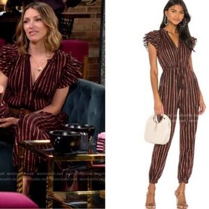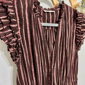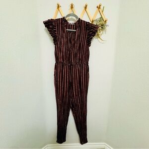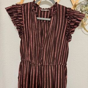 Ulla Johnson Gauzy Elio Metallic Copper Stripe Brown Short Sleeve Jumpsuit Sz 0