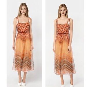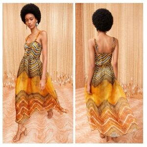 Ulla Johnson Gisele Watercolor Print Silk Sleeveless Midi Cocktail Dress size 6