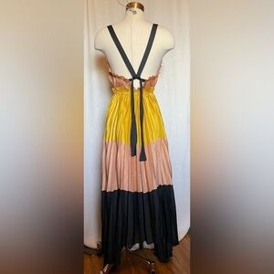 Wow! Stunning pleated dress. Deep V. Adjustable waistline. Perfect for wedding, holiday party, homecoming, prom. Back straps need a few stitches (i left undone so you can place for perfect fit)