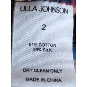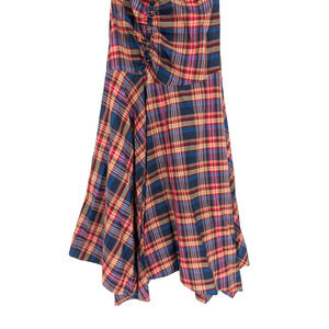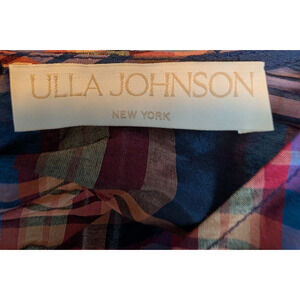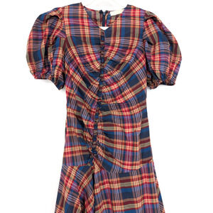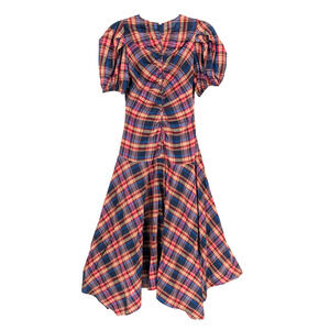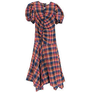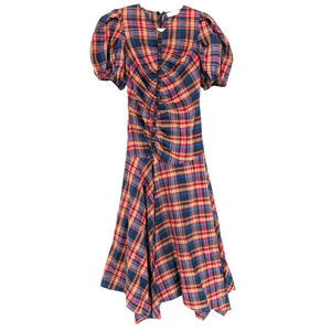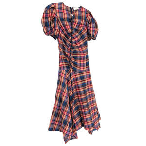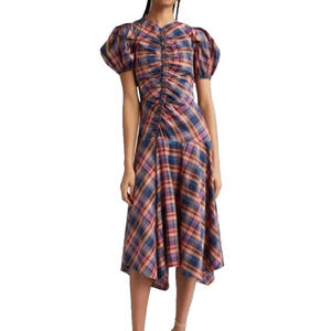 Ulla Johnson Heleen Puff Sleeve Silk Cotton Plaid Asymmetric Midi Dress Size 2