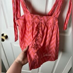 The perfect tank top for those warmer weather seasons.100% cotton. Hidden side zipper closure. Self-tie shoulder straps. Front button detail. Hand wash. Made in India