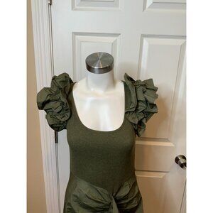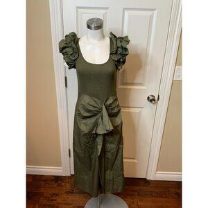 Ulla Johnson Isabella Military Melange Green Ruffle Dress, Size P